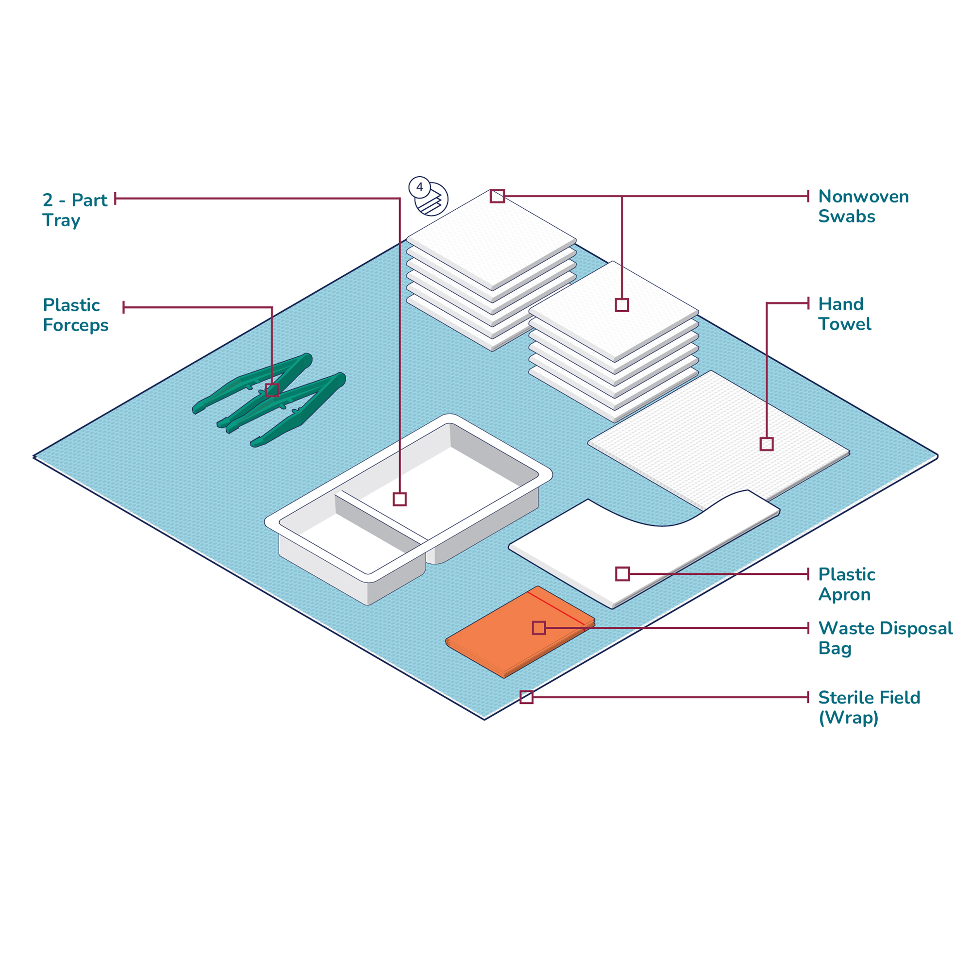 • 1 x Sterile Field (45 x 45 cm, Wrap)