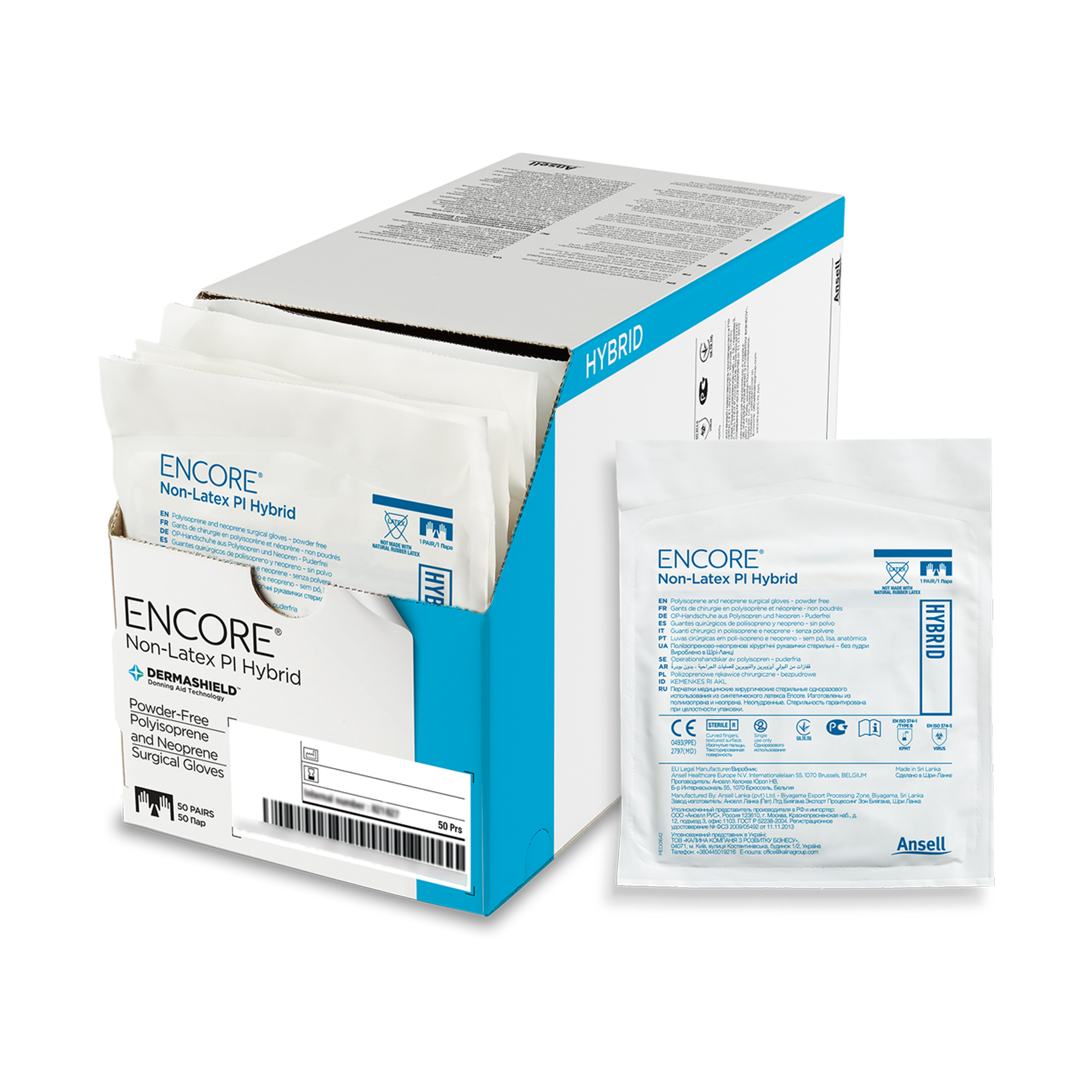 The Ansell Encore® Non–Latex PI Hybrid Surgical Gloves are manufactured from a blend of polyisoprene and neoprene providing comfort and strength.